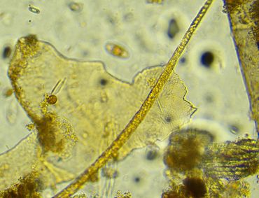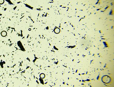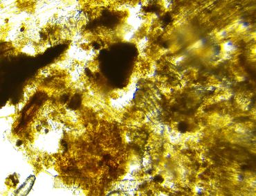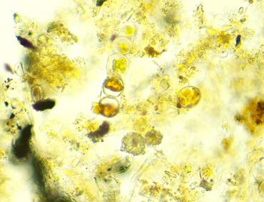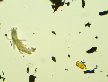Biochar was sampled on a bi-weekly basis after four weeks where a small piece of biochar was randomly selected and rinsed with distilled water. The piece was split in two and a shaving from the center was taken with a razor blade. This shaving was then chopped and crushed with the razor blade and added to 3mls of distilled water in a small cup and a bulb syringe was used to extract <1ml of solution and placed onto a glass slide for observation.